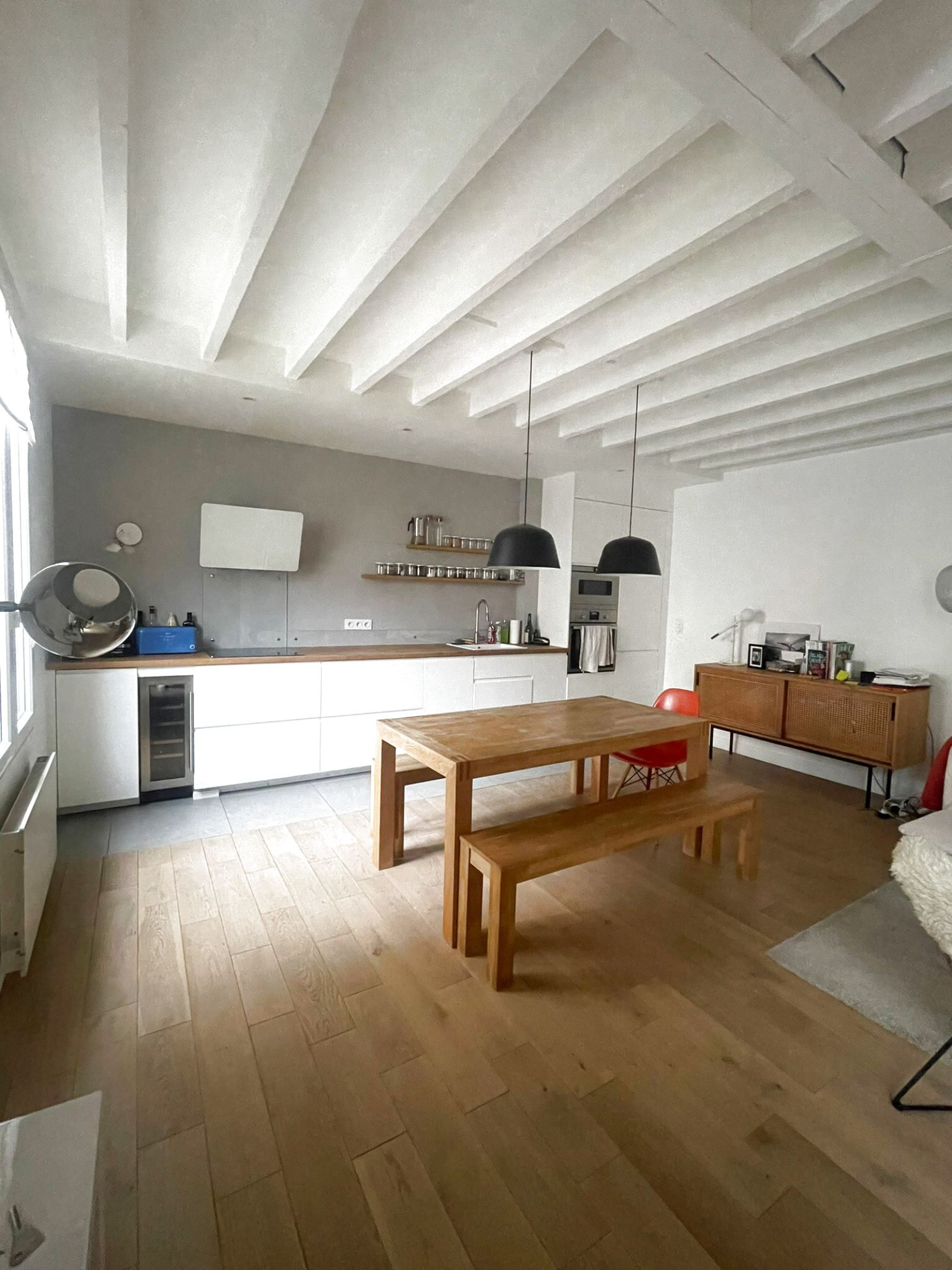 Situé rue des Poissonniers coup de cœur assuré pour ce sublime duplex de 67 m² comprenant un vaste séjour avec cuisine ouverte entièrement aménagée et équipée, une buanderie, 2 chambres à l'étage accompagnées d'une salle d'eau avec WC. Meublé avec des matériaux de haute qualité. Au calme sur petite cour arborée avec stationnement vélos. Chauffate et eau chaude individuels électriques - Disponible au 19/04/2026