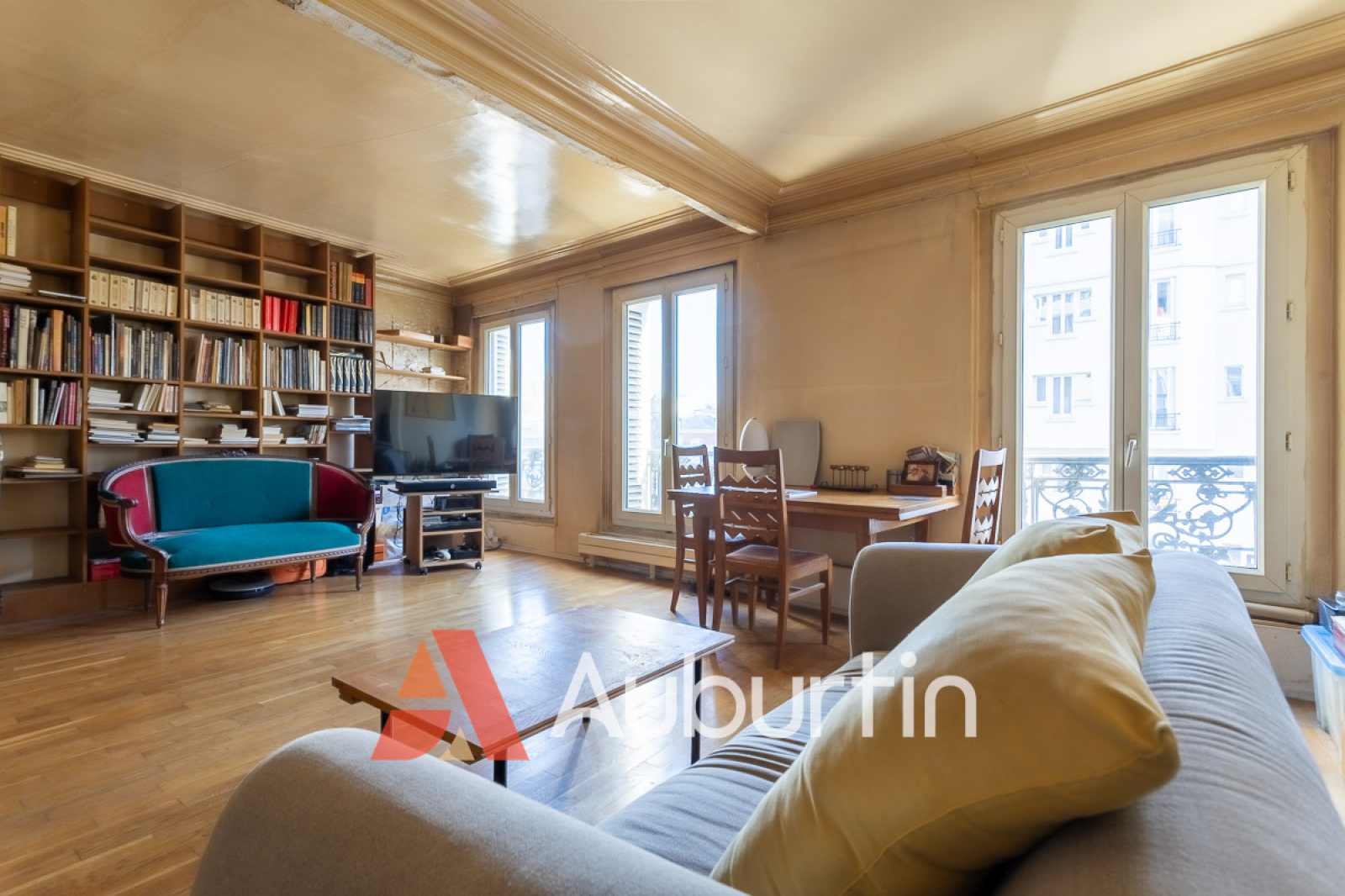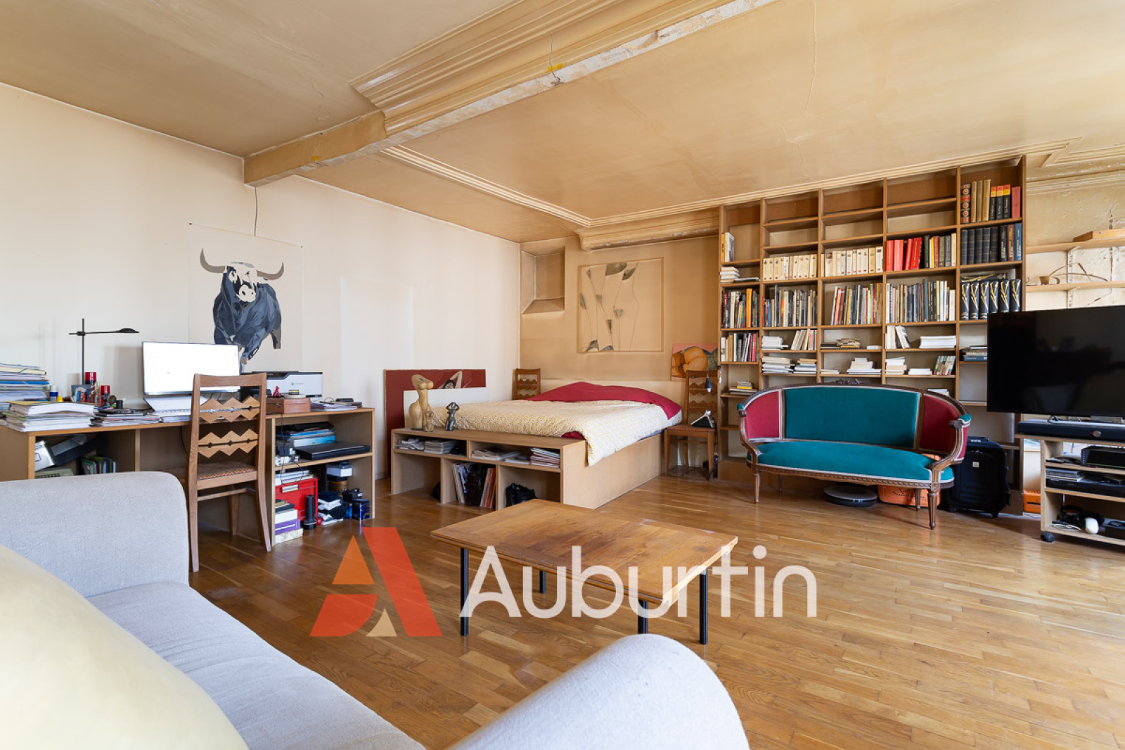 L'espace généreux et lumineux séduit par ses hauts plafonds et ses grandes fenêtres.