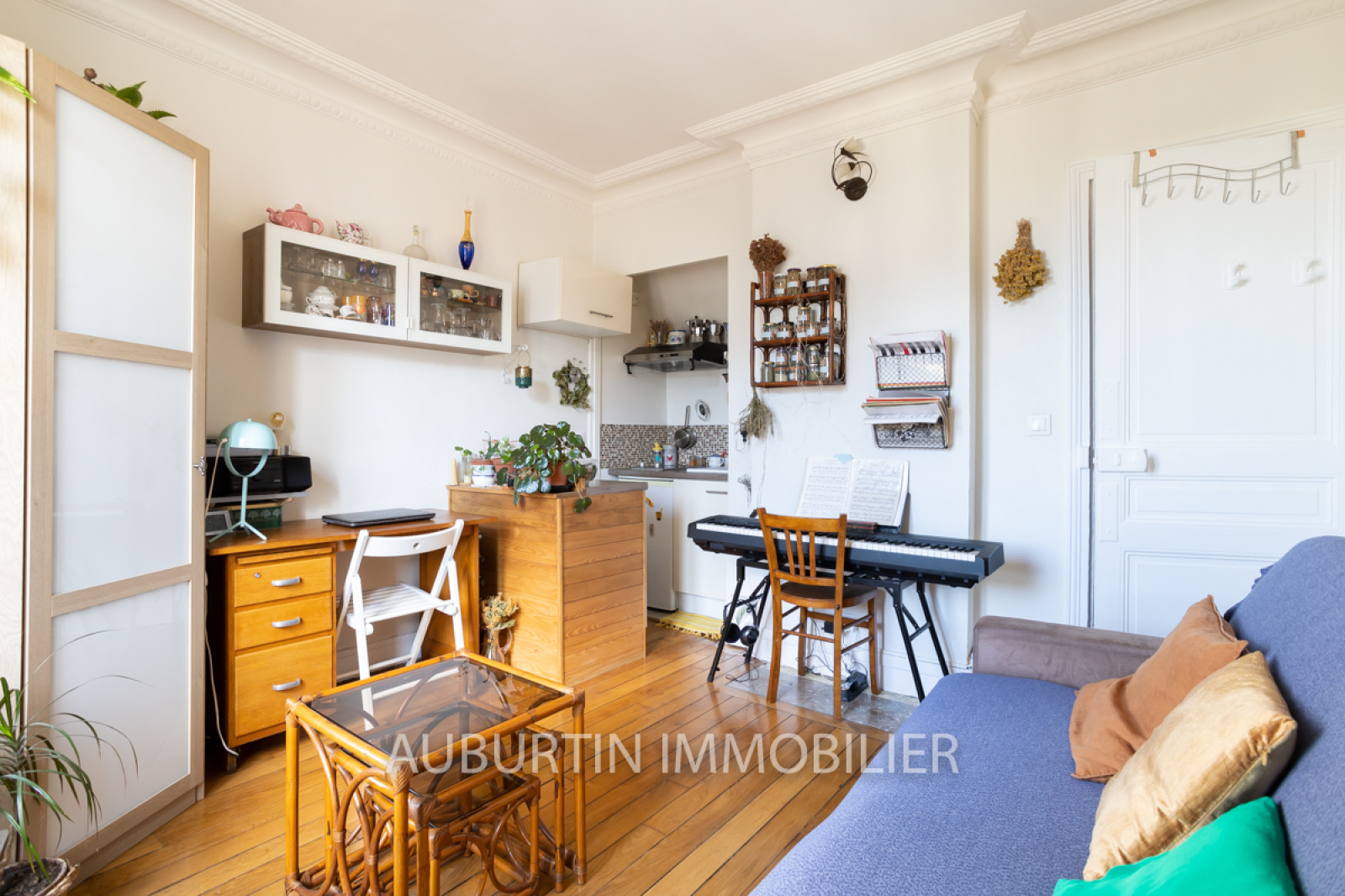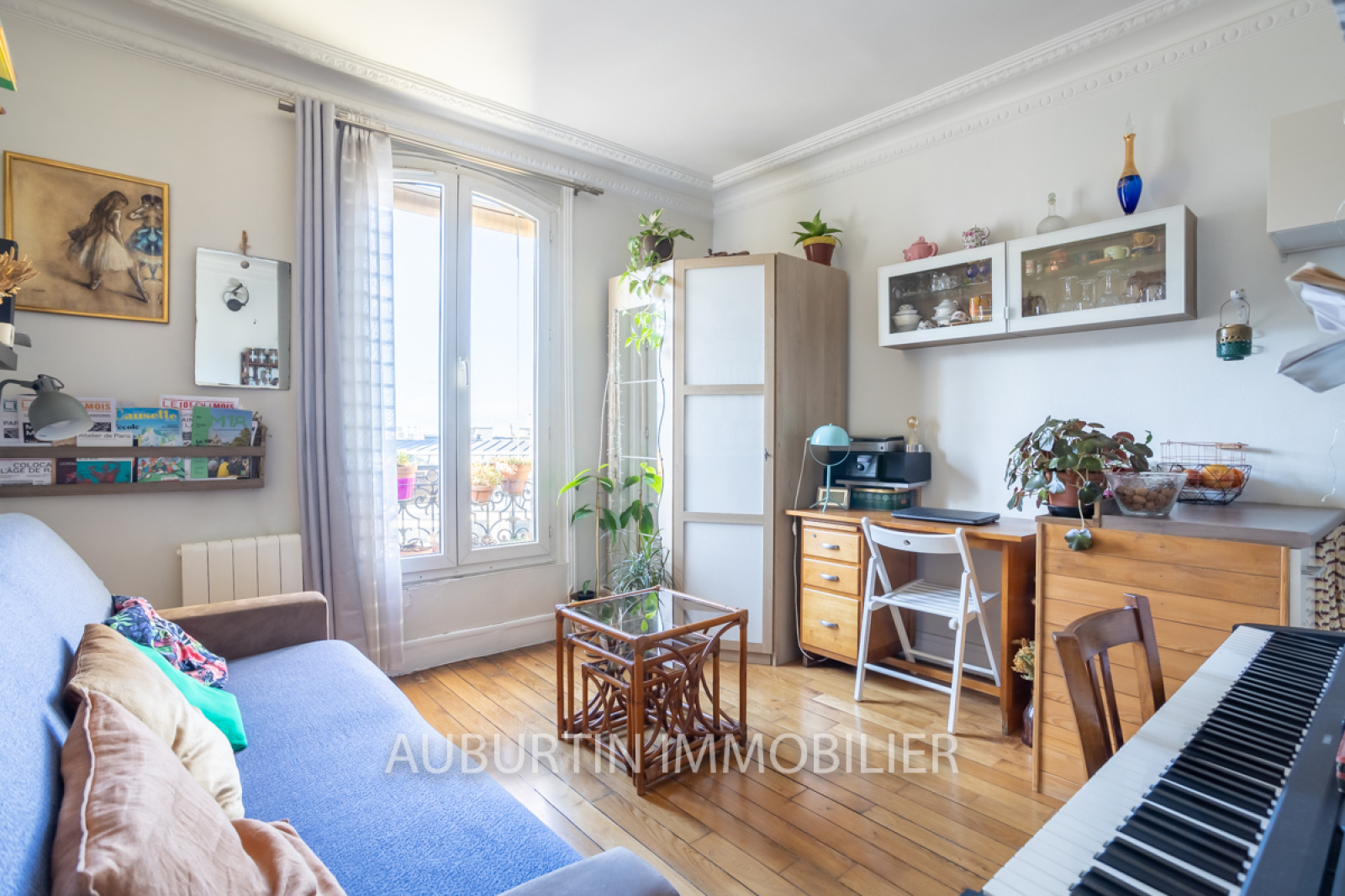 Métro Lamarck-Caulaincourt, dans un bel immeuble haussmannien, au 6ème étage avec une vue dégagée, nous vous proposons ce charmant studio en parfait état comprenant une entrée, une salle d'eau avec WC, branchement lave-linge et VMC, une pièce de vie avec coin cuisine aménagé et équipé de placards, meuble-bar, plaques de cuisson, hotte et réfrigérateur. Beau parquet d'origine en chêne, moulures, fenêtre double vitrage et électricité aux normes. Possibilité de garer son vélo dans la cour de l'immeuble. Idéal primo accédant ou investisseur.