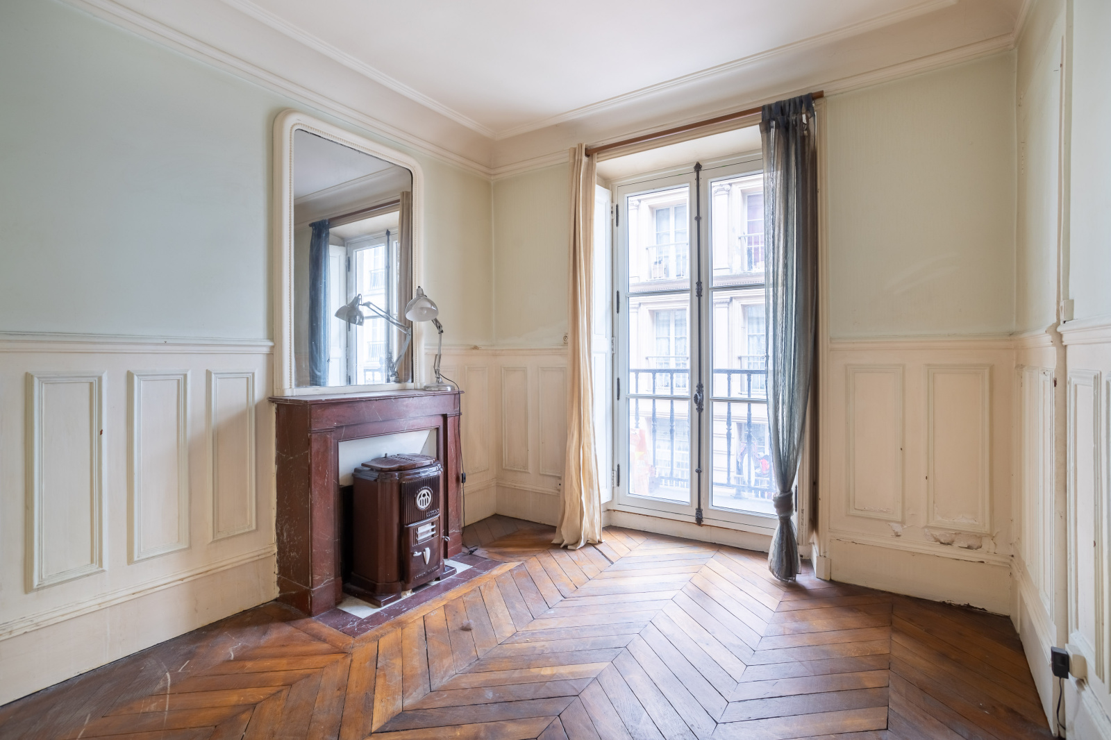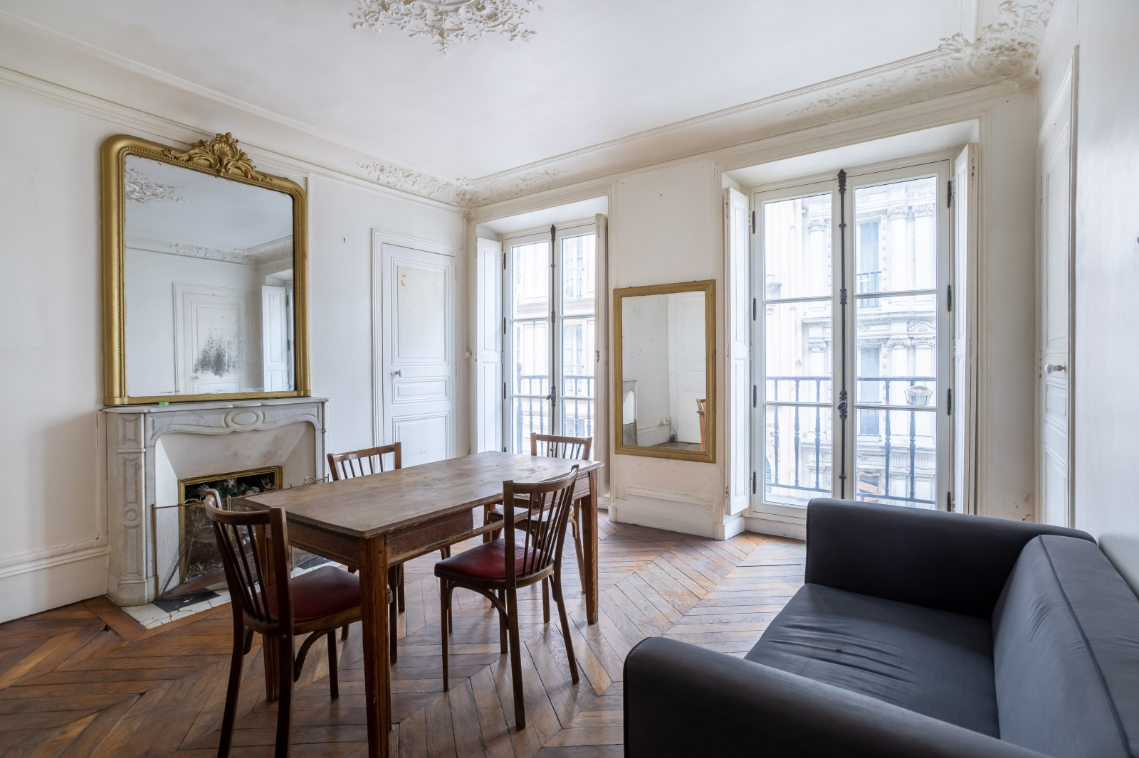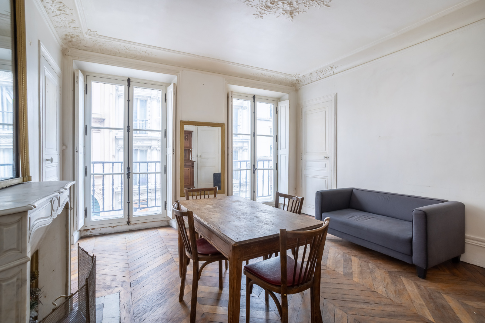Vous retrouverez les trois éléments qui constituent l’ADN de l’appartement haussmannien : parquet, moulures et cheminée.