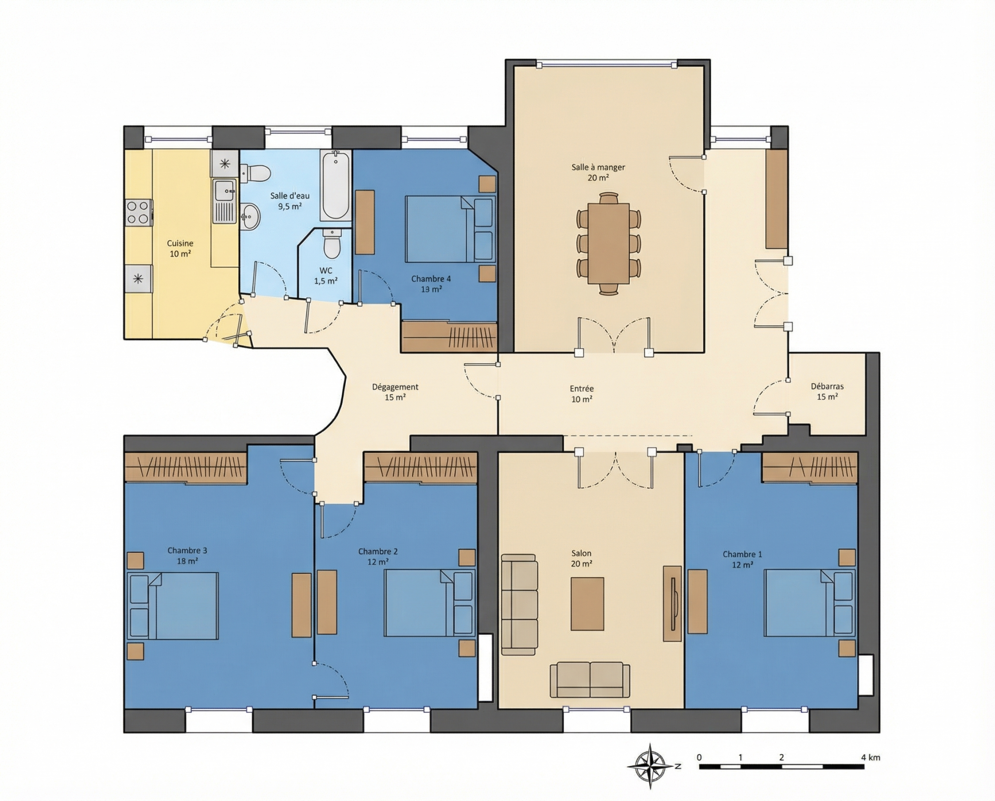 4 pièces - 101,38 m²